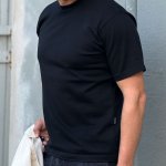 This heavyweight 11oz cotton knit T-shirt in classic black. Made from 11oz Australian knitted cotton for serious durability and everyday wear. Structured feel, classic crew neck. Way too solid to be called just a tee. Perfect on its own or layered under a flannel or jacket.